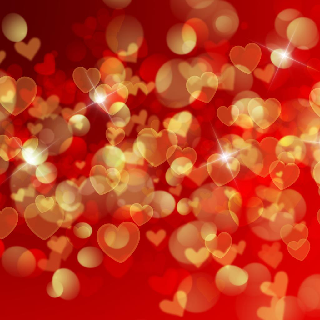 » Обои Золотистые сердечки на красном фоне