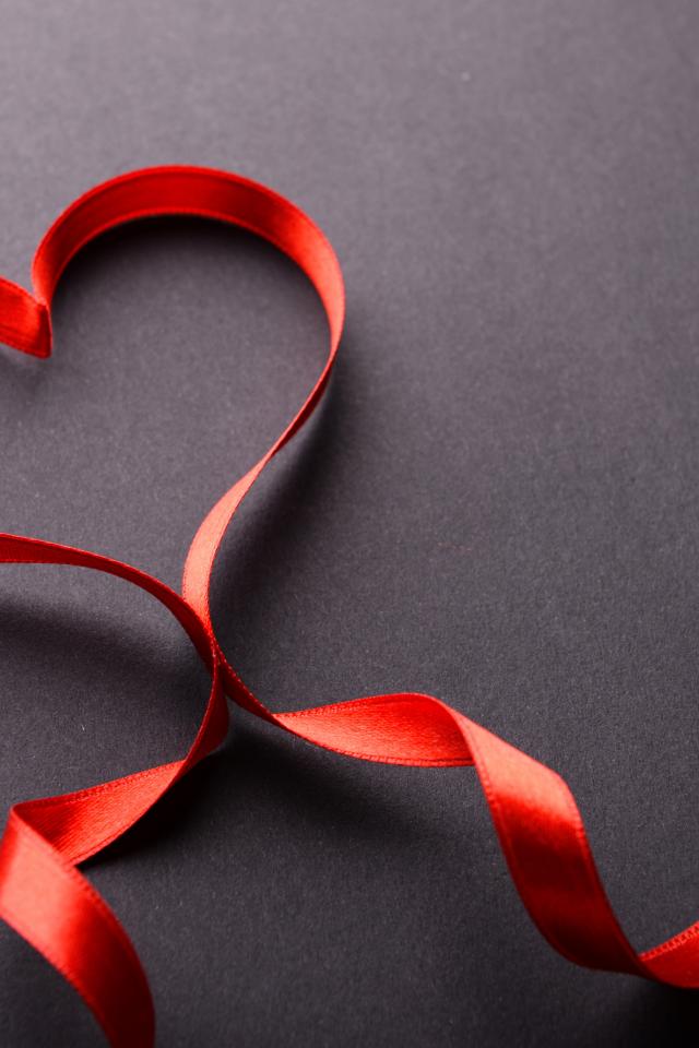 Обои Красное сердце из атласной ленты на сером фоне