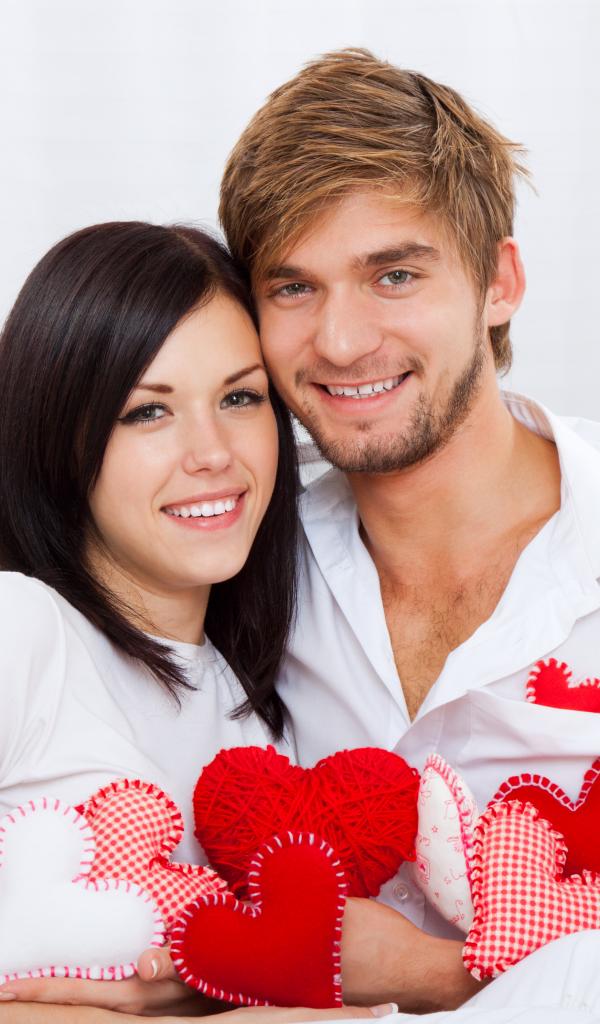 Обои Красивая влюбленная пара с маленькими сердечками в руках