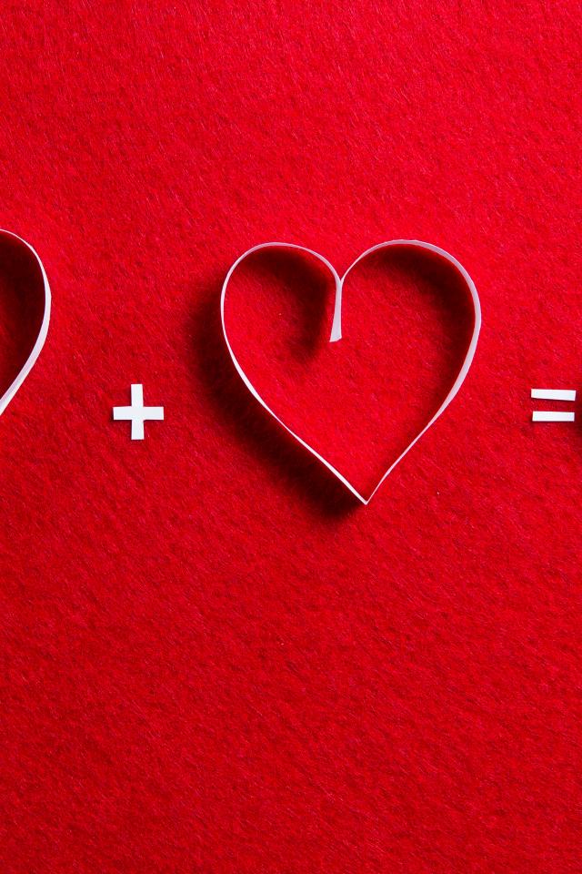 Обои Белые бумажные сердечки на красном фоне