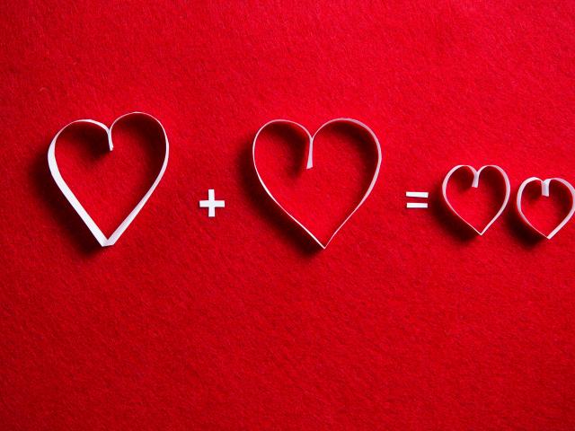 Обои Белые бумажные сердечки на красном фоне
