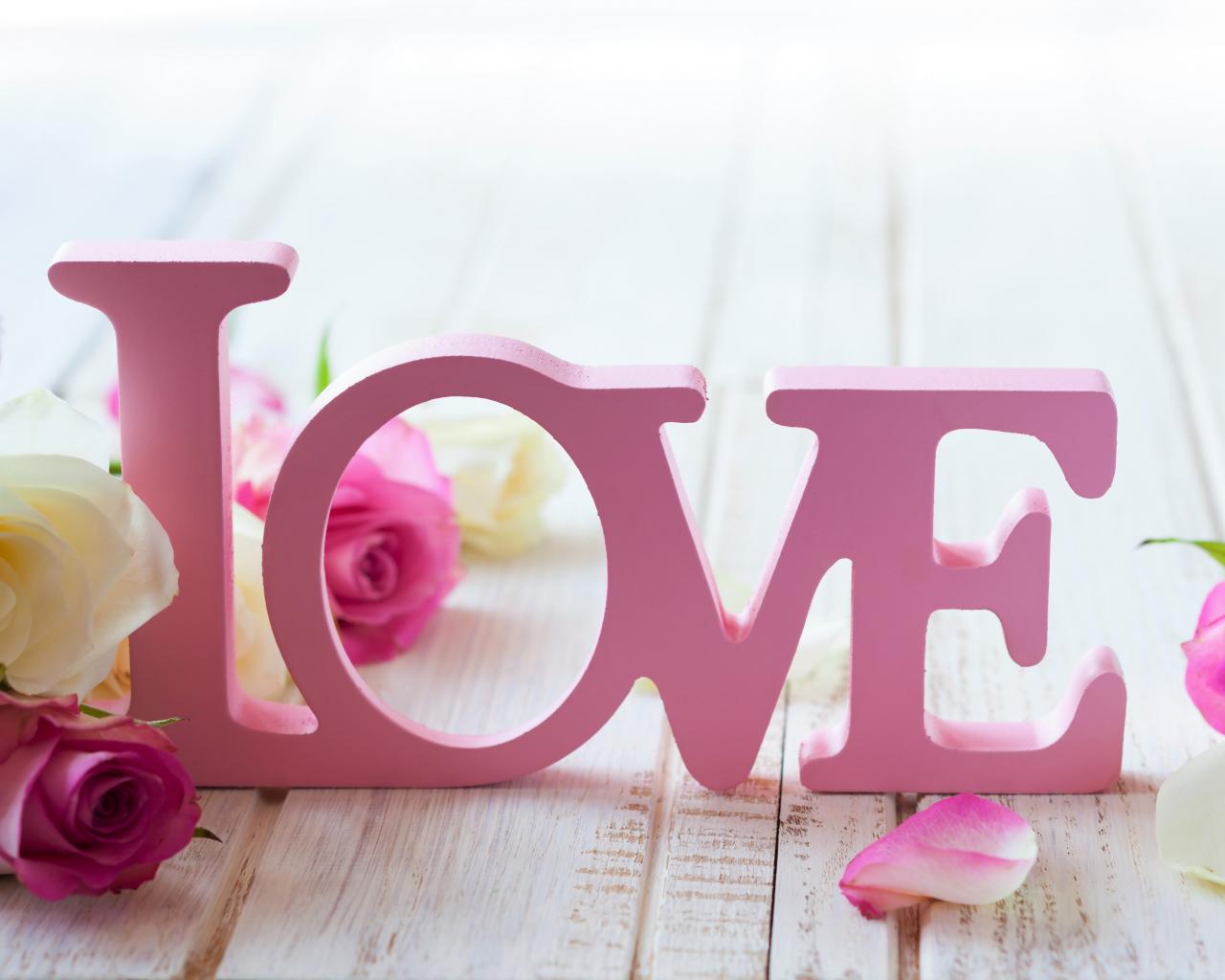 Обои Розовая надпись любовь с нежными белыми и розовыми розами