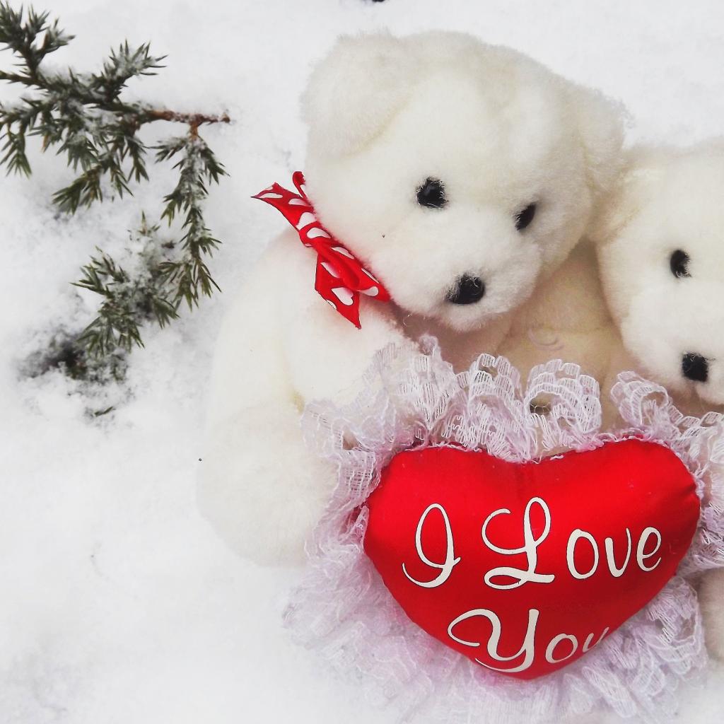 Обои Два белых плюшевых медведя с сердечком