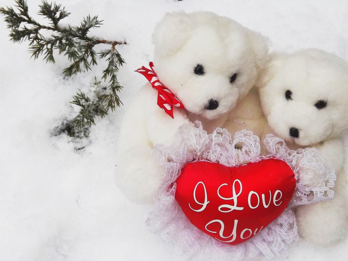 Обои Два белых плюшевых медведя с сердечком
