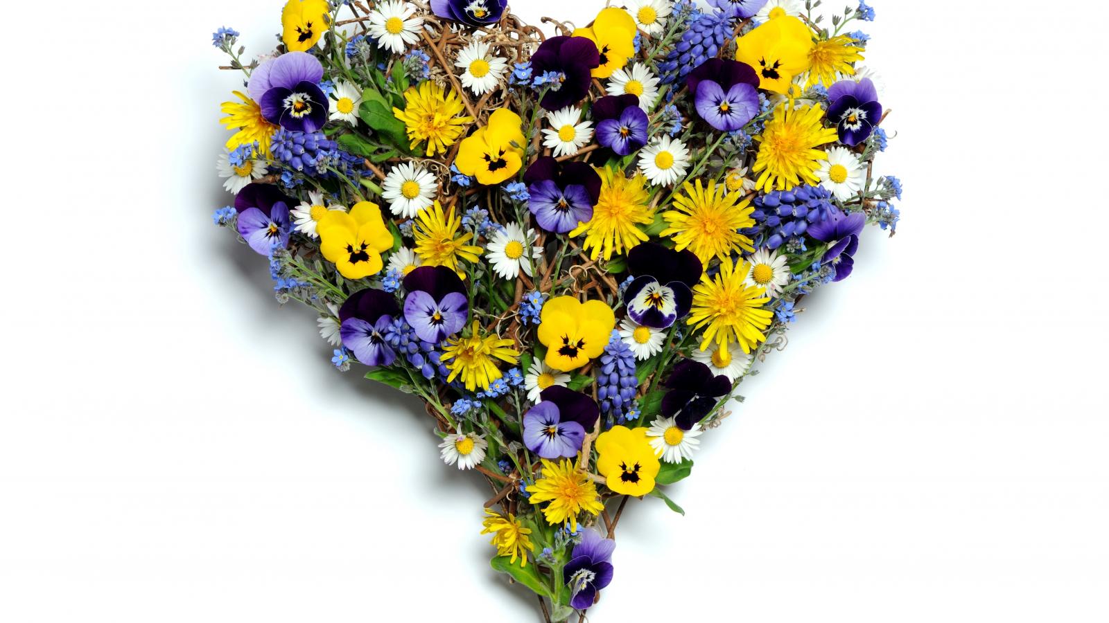 » Обои Сердце из полевых цветов на белом фоне