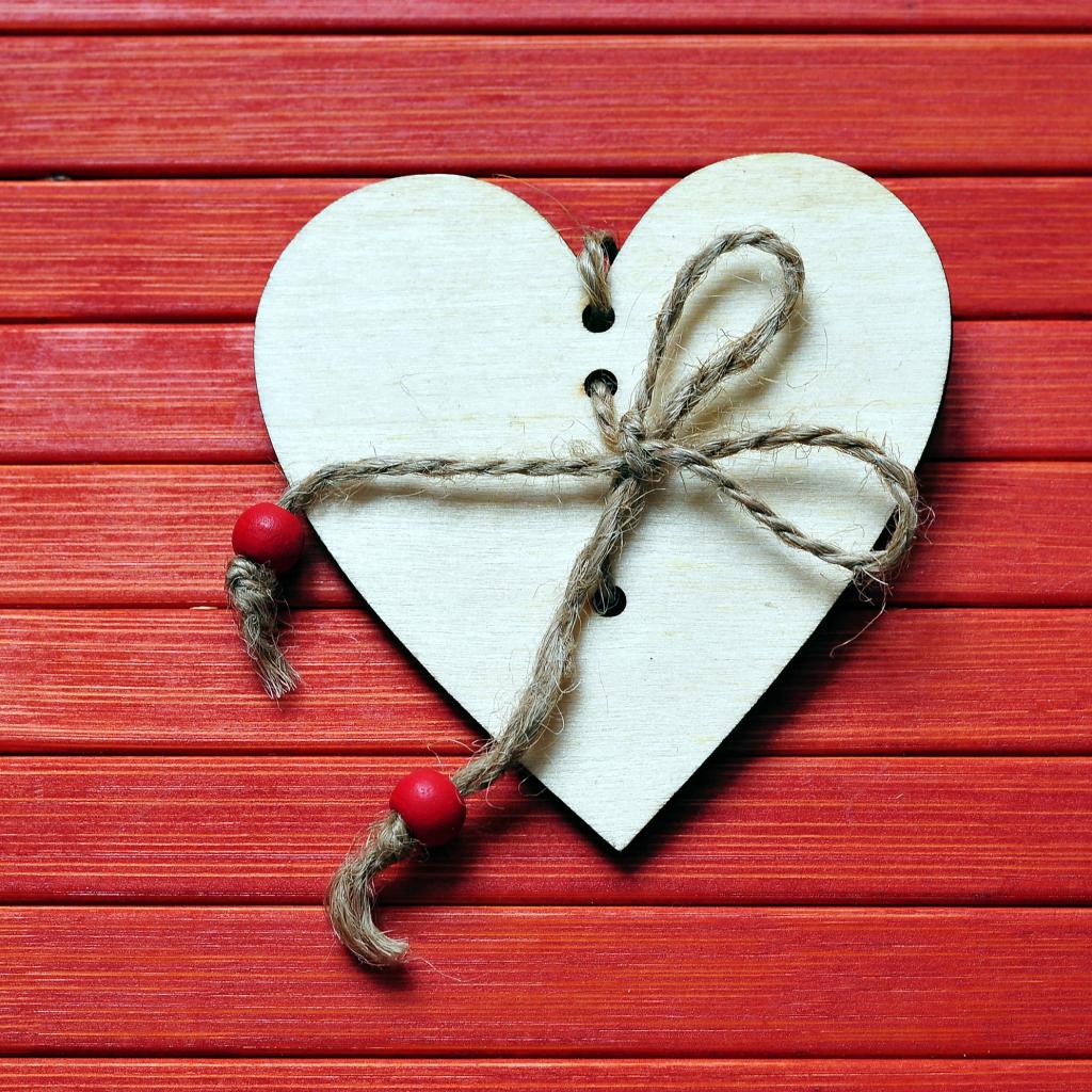 Обои Сердце с веревкой на красном деревянном фоне