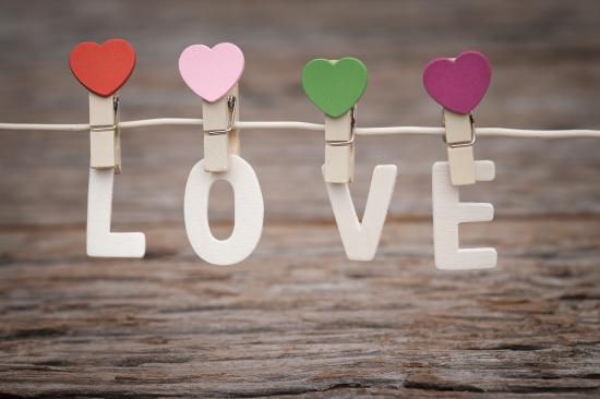 Обои Буквы LOVE на прищепках на веревке
