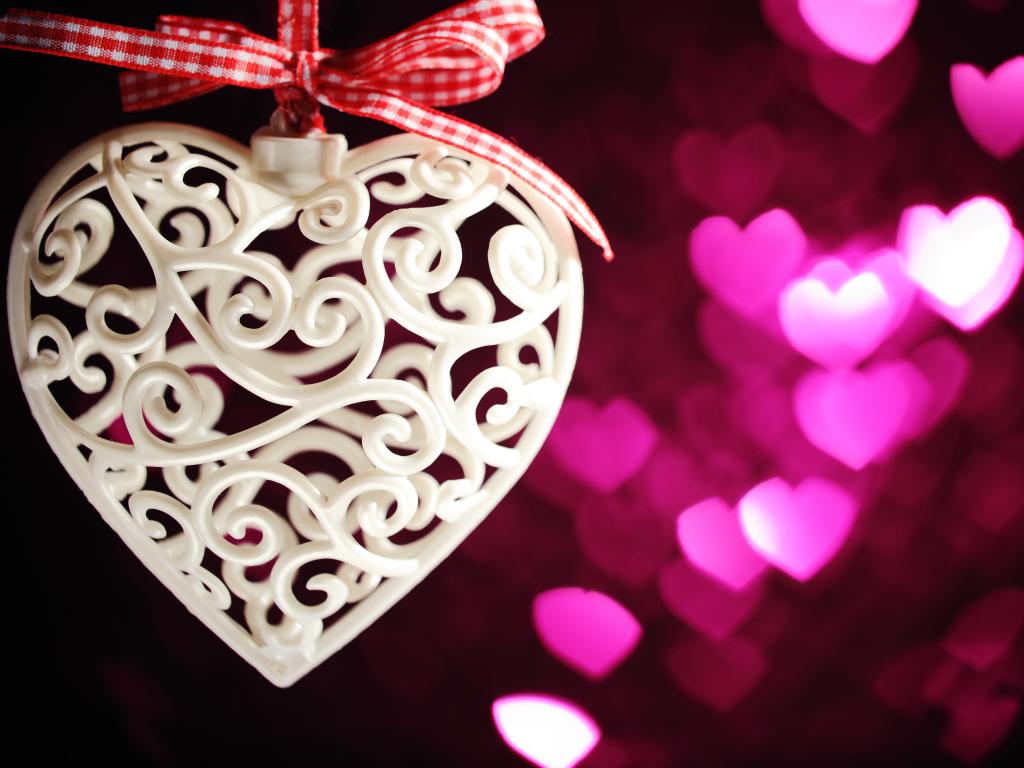 Обои Плетеное розовое сердце в подарок на Международный женский день 8 марта