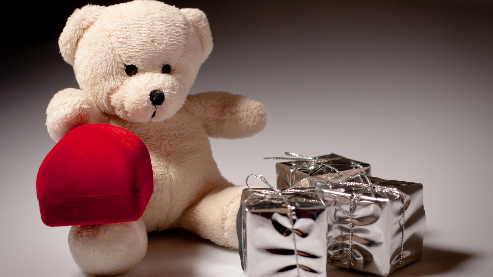 Обои Плюшевый мишка Тедди с красной коробкой для кольца