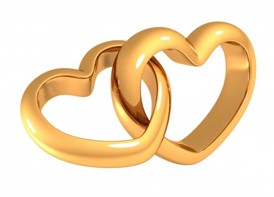Обои Два золотых сердца на белом фоне