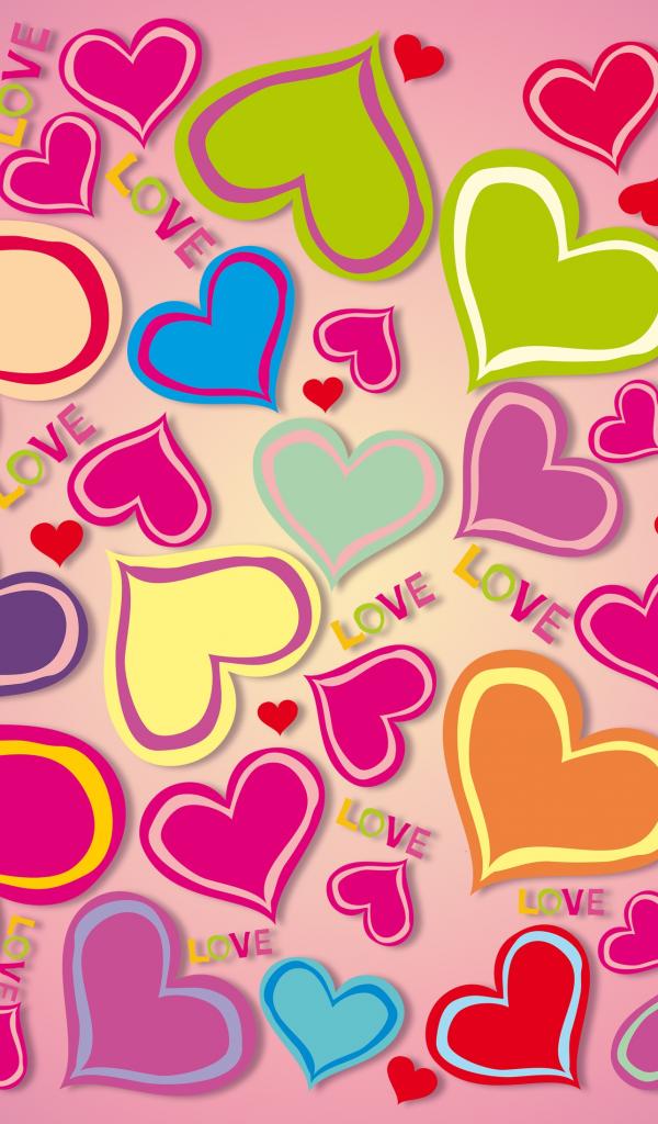 Обои Много разноцветных сердечек на розовом фоне