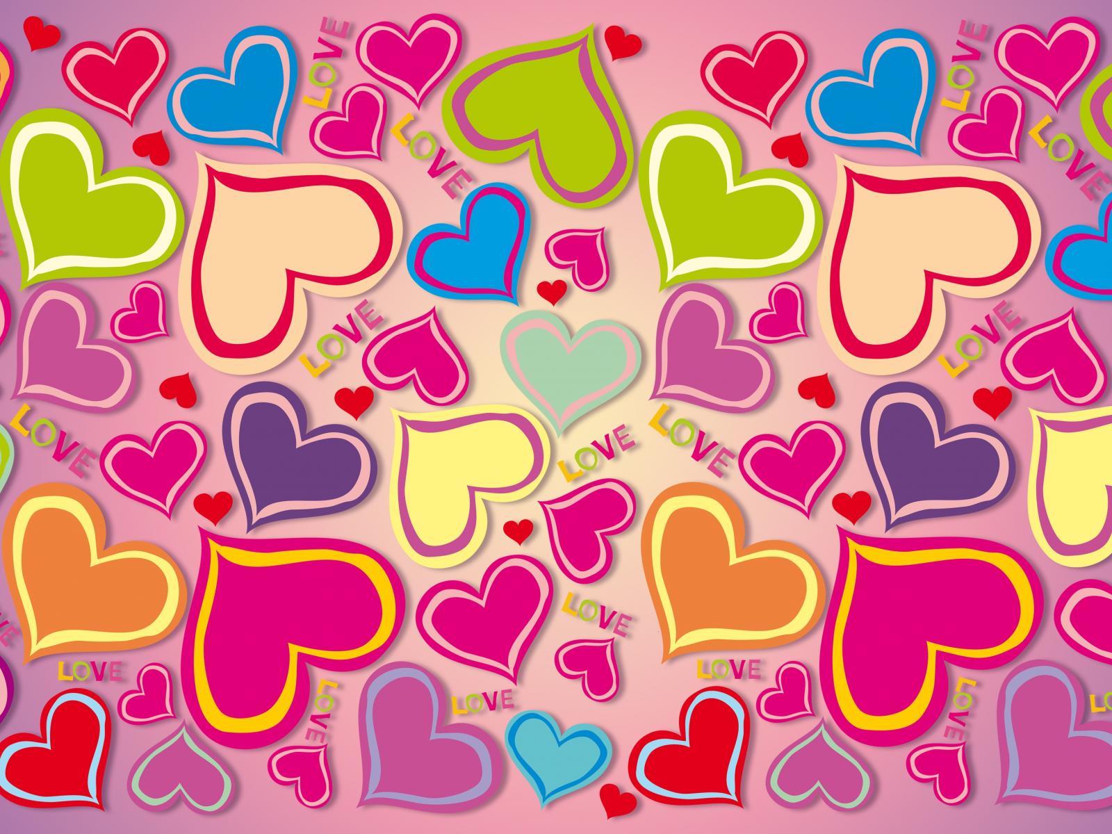 Обои Много разноцветных сердечек на розовом фоне