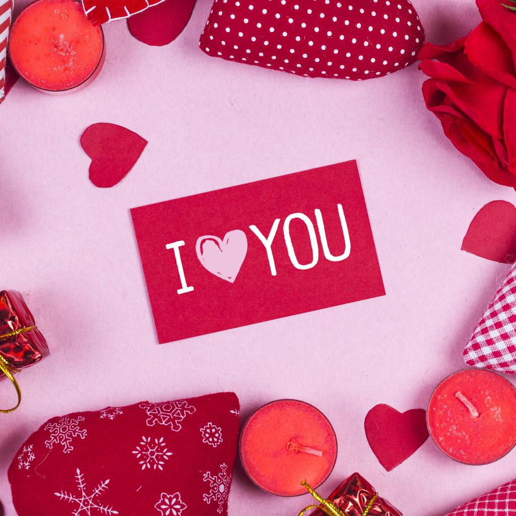 Обои Сердечки, свечи и роза вокруг надписи Я тебя люблю