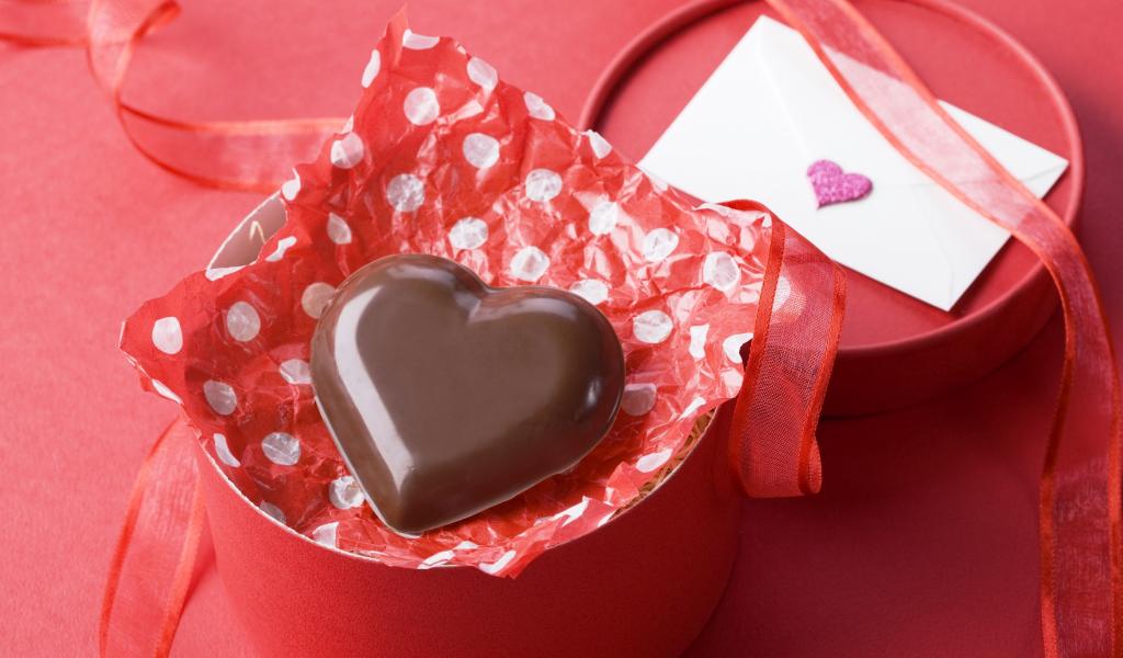 Обои Шоколадное сердце к круглой розовой подарочной коробке