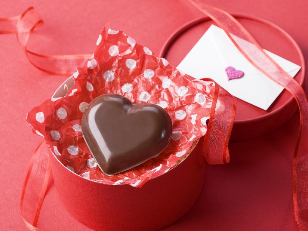 Обои Шоколадное сердце к круглой розовой подарочной коробке