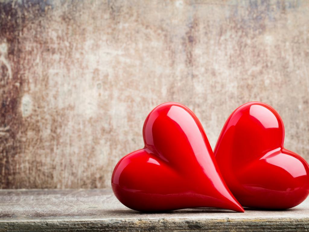 Обои Два ярких красных сердца на сером фоне