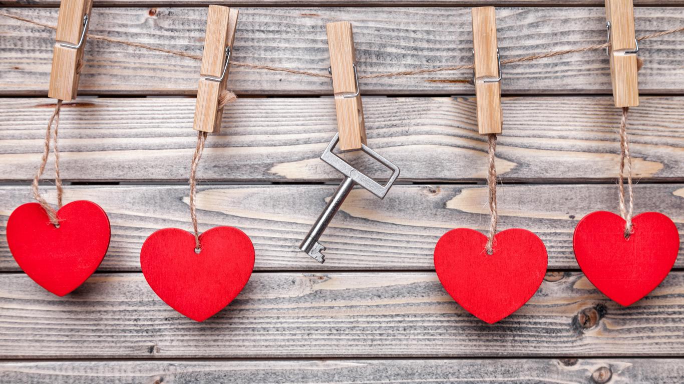 Обои Красные сердечки на нитках на прищепках с ключом