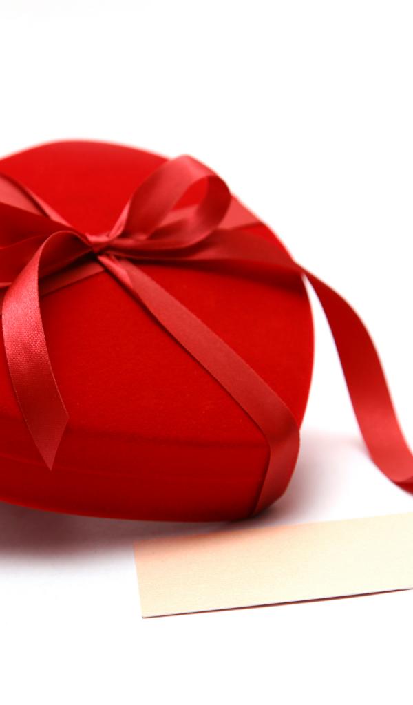 Обои Красная коробка для ювелирных изделий в форме сердца на белом фоне