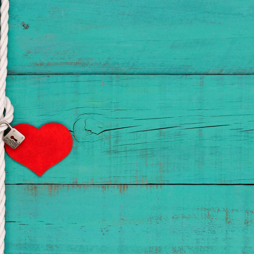 Обои Красное сердечко на веревке с замком на голубом фоне