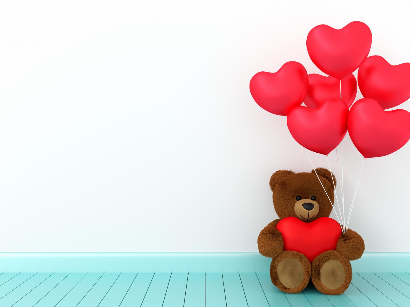 Обои Плюшевый медведь с воздушными шарами в форме сердца