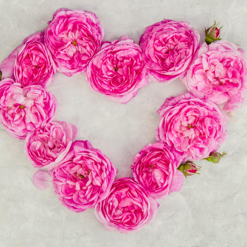 Обои Сердце из розовых роз на сером фоне