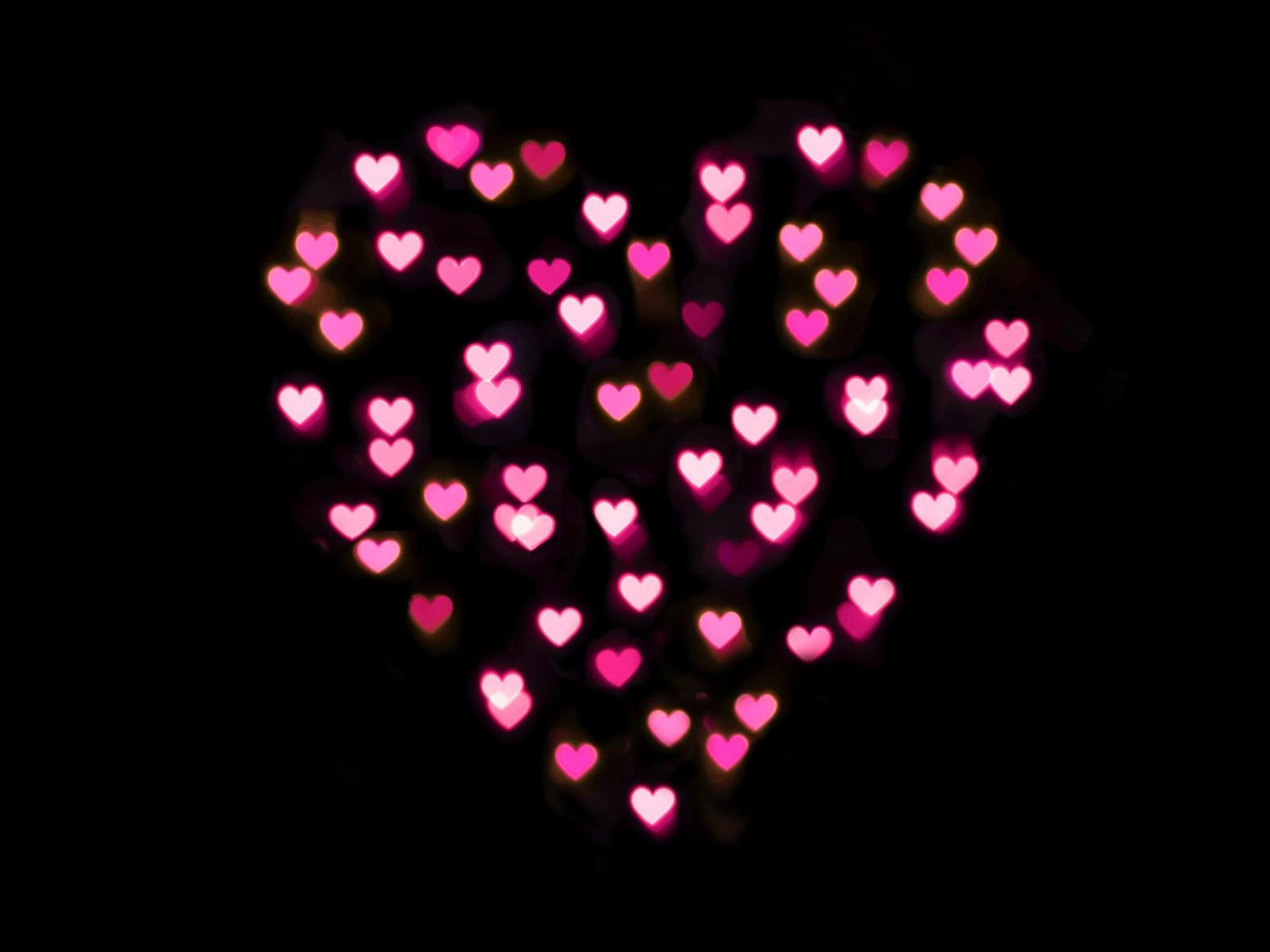Обои Сердце из маленьких розовых сердечек на черном фоне