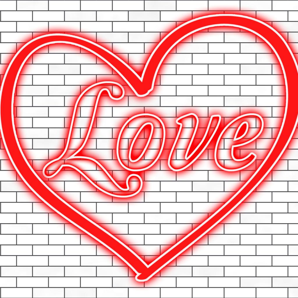 Обои Красное сердце с надписью Любовь на кирпичной стене