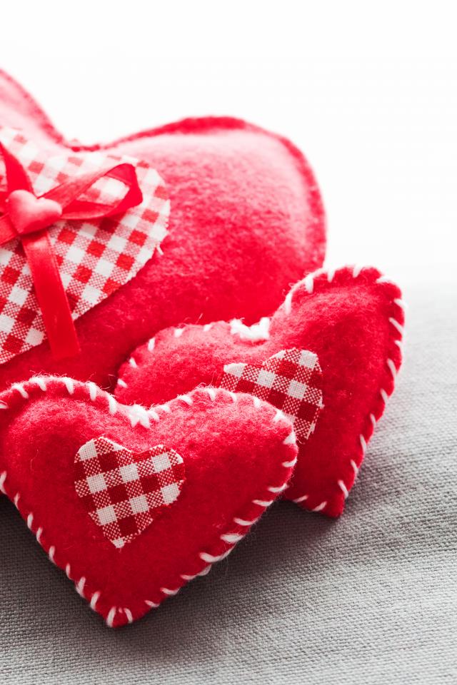 Обои Сердечки из ткани лежат на серой поверхности