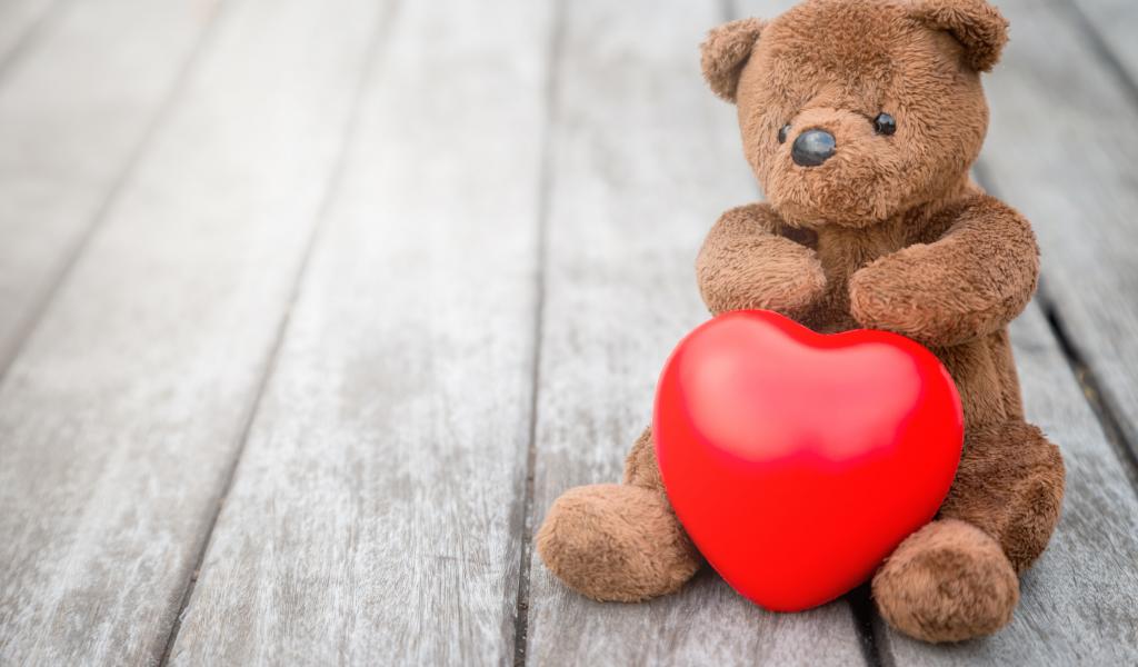 Обои Медвежонок Тедди с красным сердцем сидит на столе