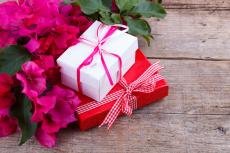 Обои Сердечки из ткани на столе с бумагой и подарками