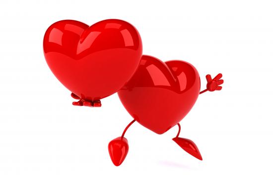 Обои Большое красное сердце держит в руке свою копию на белом фоне