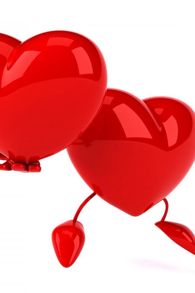 Обои Большое красное сердце держит в руке свою копию на белом фоне