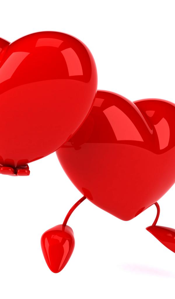 Обои Большое красное сердце держит в руке свою копию на белом фоне