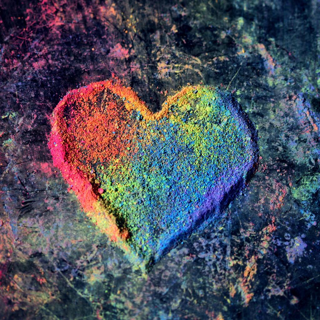 Обои Разноцветное сердце из сухой краски на сером фоне
