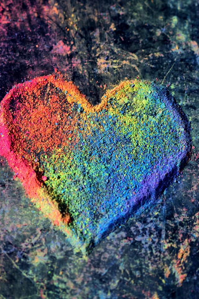 Обои Разноцветное сердце из сухой краски на сером фоне