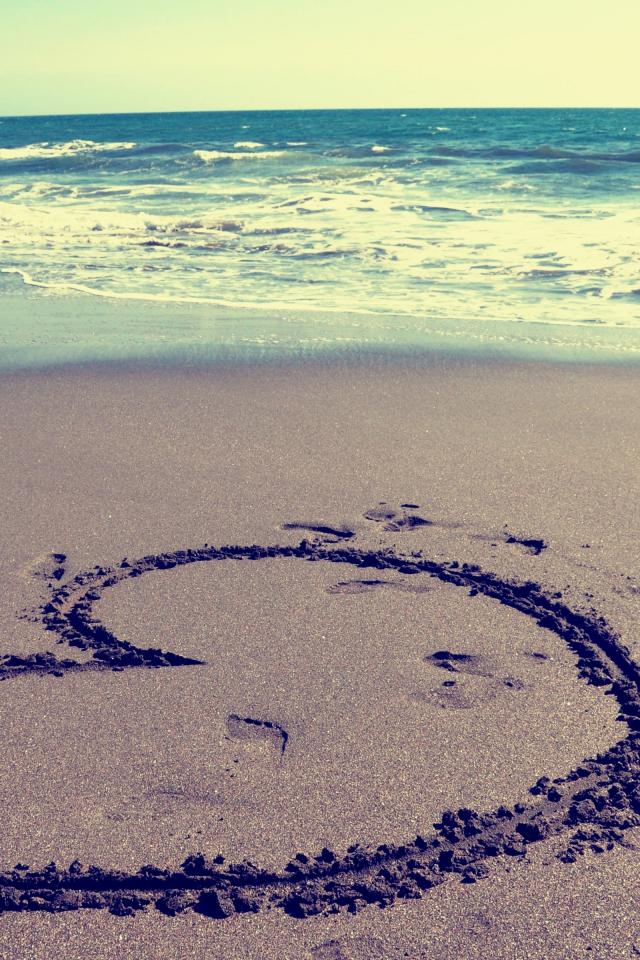 Обои Большое сердце на мокром песке на пляже