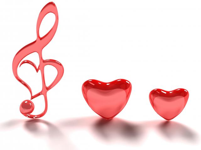Обои Два красных сердца и нотный знак на белом фоне