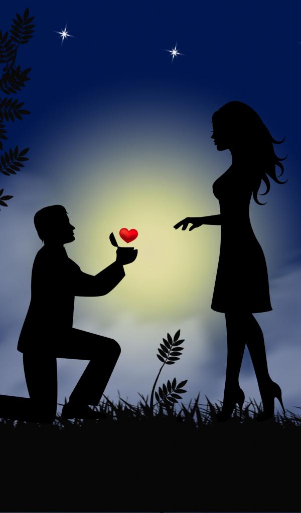 Обои Парень делает девушке предложение на фоне луны