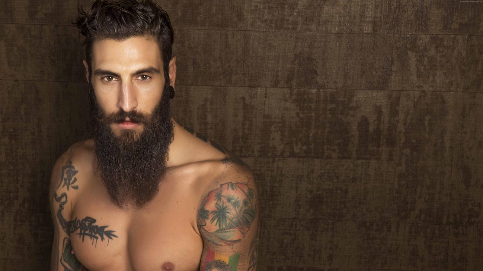 Обои Молодой парень модель Маттео Маринелли с бородой и татуировками на теле