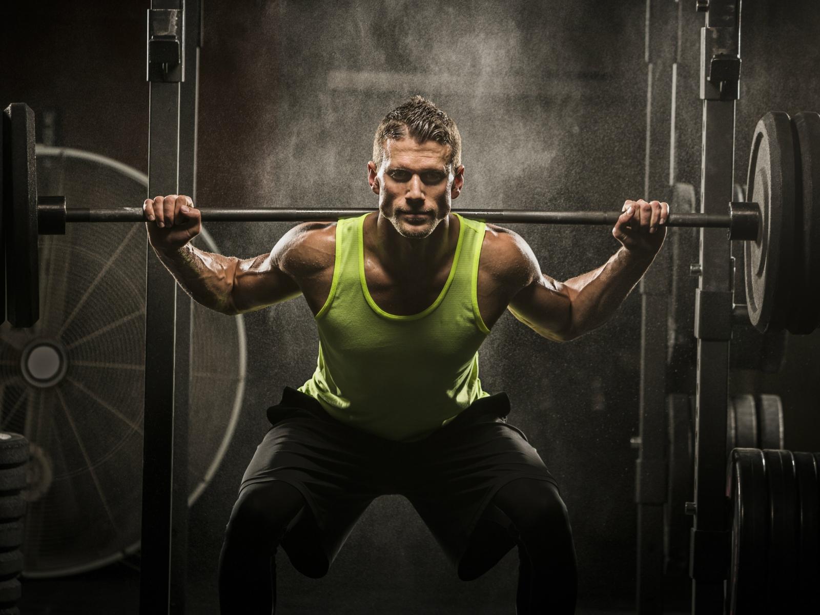 Обои Мужчина спортсмен со штангой на плечах
