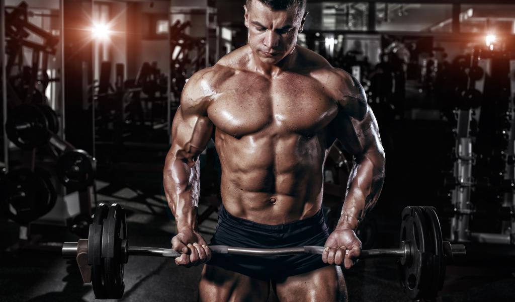 Обои Мускулистый мужчина со штангой в руках в спортзале