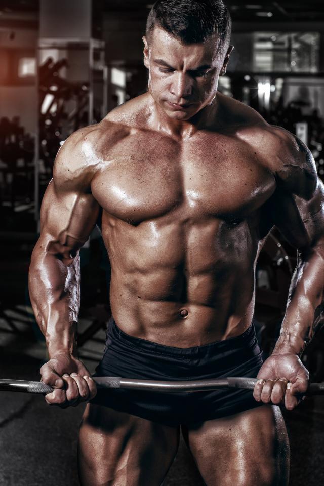 Обои Мускулистый мужчина со штангой в руках в спортзале
