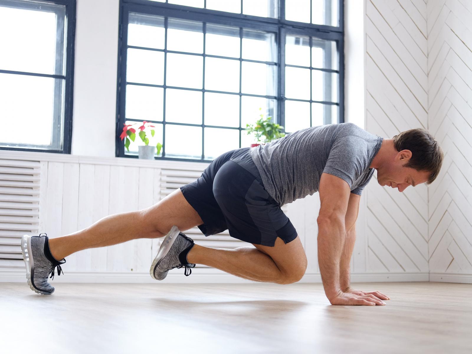 Обои Спортивный мужчина делает упражнения в спортзале