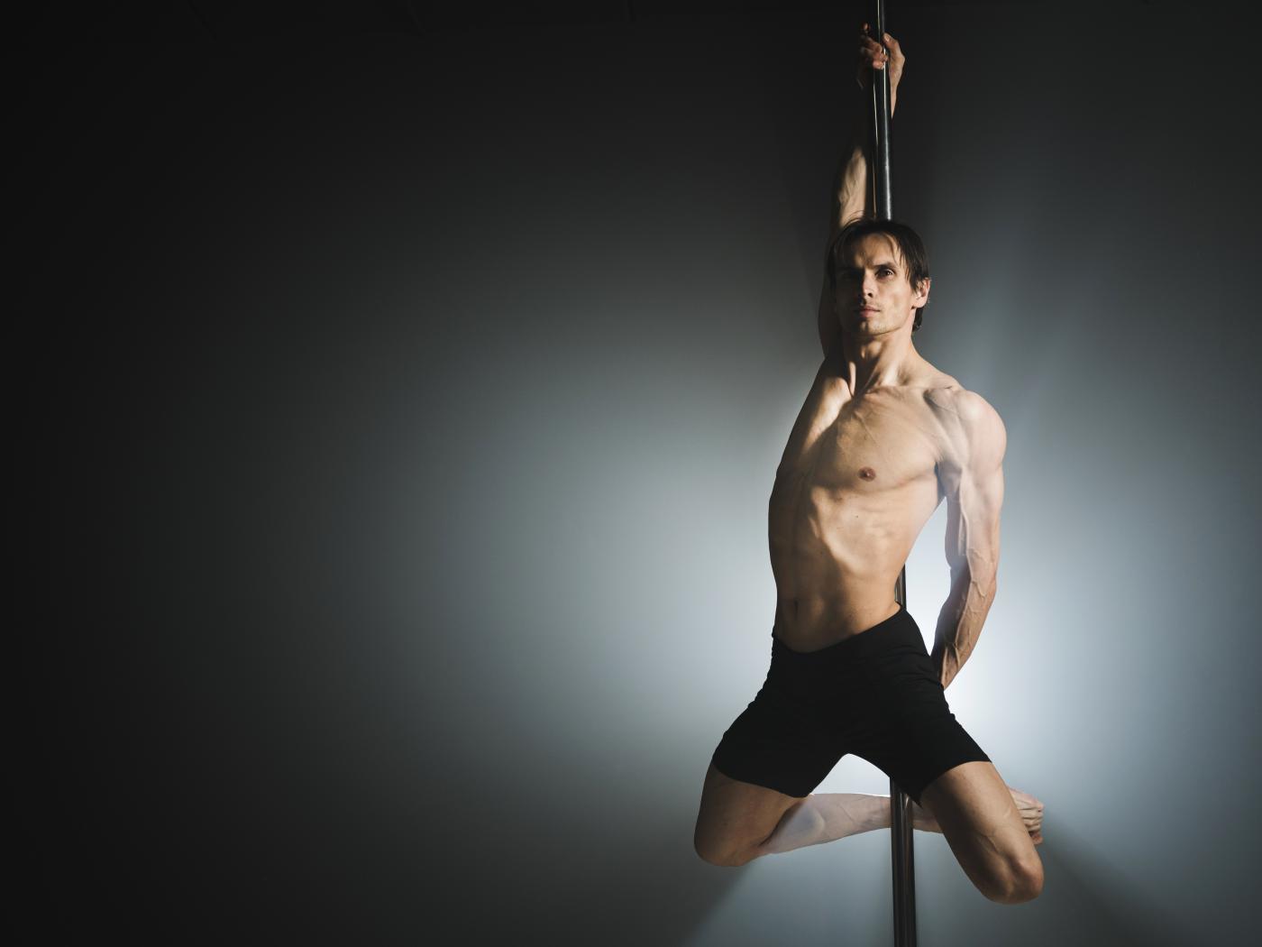 Обои Мужчина танцует на пилоне на сером фоне