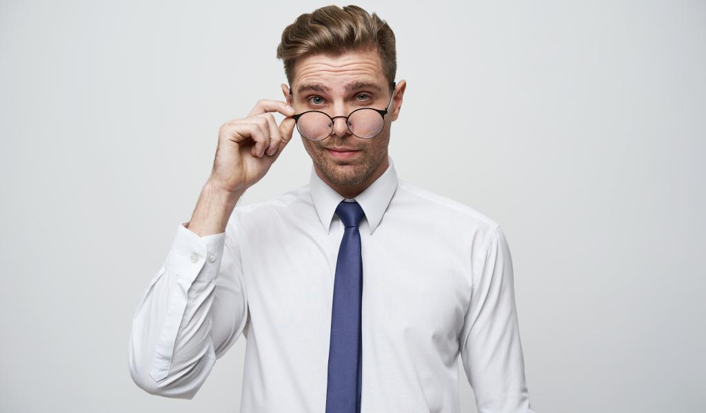Обои Стильный мужчина в белой рубашке в очках