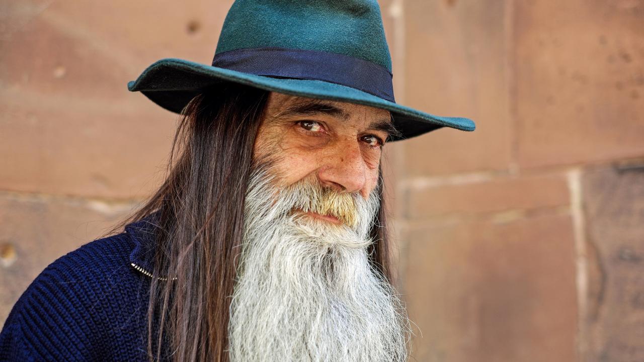Обои Пожилой мужчина с длинными волосами в шляпе