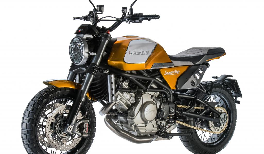 Обои Мотоцикл Morini Scrambler, 2019 года на белом фоне