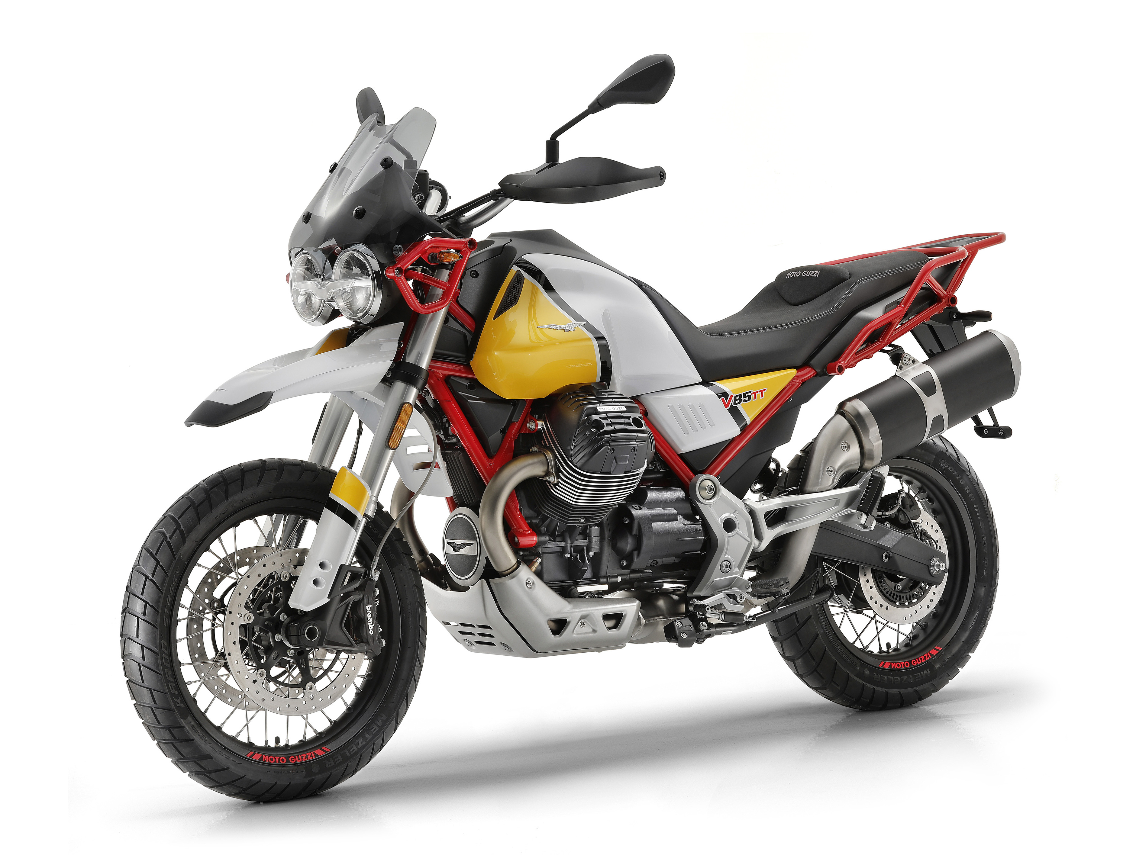 Обои Мотоцикл Guzzi V85 TT, 2019 года на белом фоне