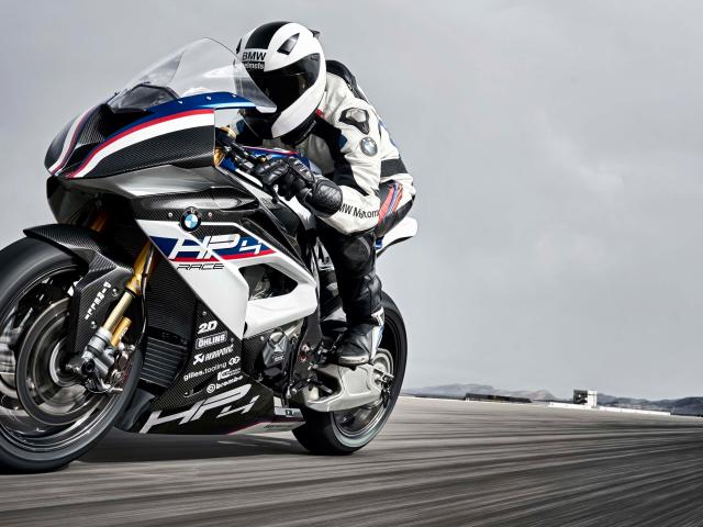 Обои Мотоциклист на быстром мотоцикле BMW HP4 Race