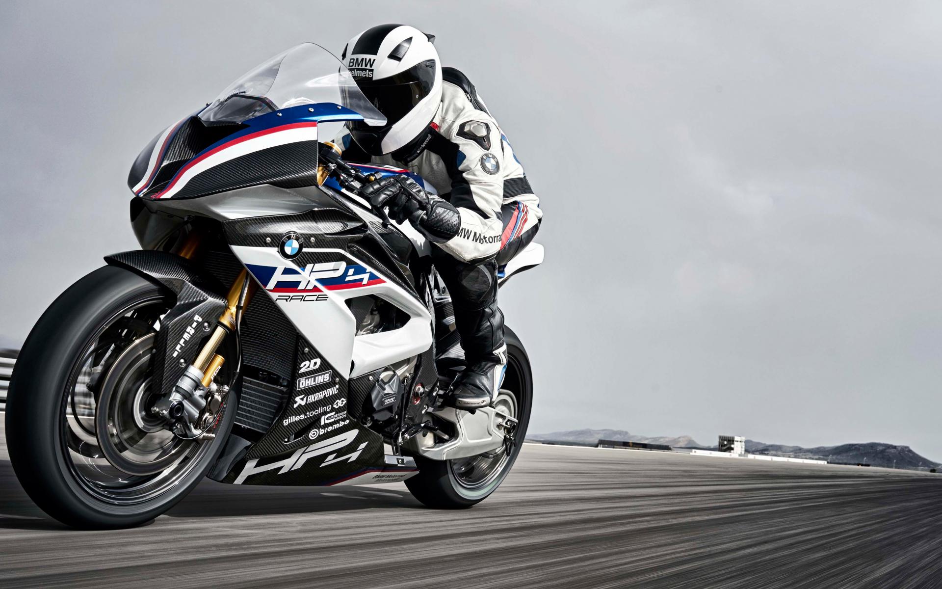 Обои Мотоциклист на быстром мотоцикле BMW HP4 Race